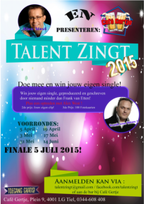 19/4 Tiel. Talent zingt van 13:30 uur tot 18:30 bij Cafe Gertje